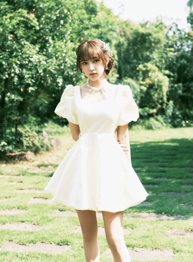 过了十分钟后女孩穿衣服下来了穿着一身泡泡袖显得她格外迷人
