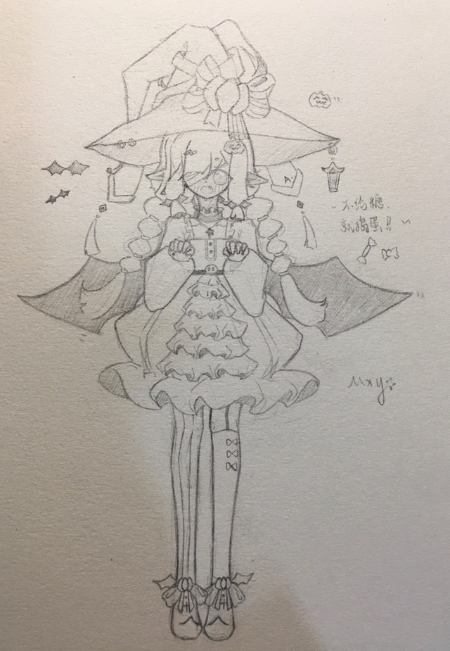 咳咳,所以为师就在即将仙去…不是,请假之前给徒儿你画了张图(虽然我也不知道为什么自己对万圣节如此执着)@一只失去梦想的芦荟(哈哈,我好皮)。