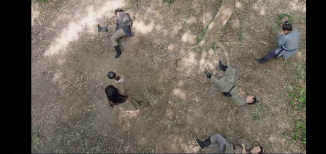 这时候草丛里冲出几个土匪,瞬间包围了俩人