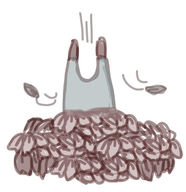 但这该死的落叶实在是太多了,你一脚深一脚浅,把树枝从叶海中拖出来。许些落叶点缀了你的头发和衣服,你伸手礼貌地邀请它们离开,但还有些顽固的钉子户,你相信总有一天它们会展翅高飞的,在这之前应该给予它们一些宽容和爱。