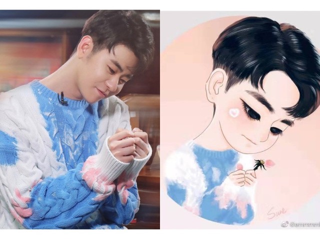 张鹤伦眼睛大大,脸上肉肉挺可爱的