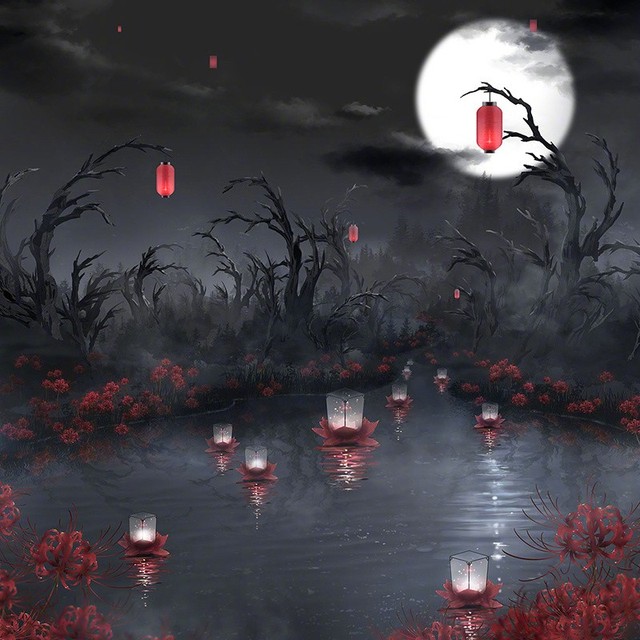 这个湖畔漆黑又可怕,给人一种冷嗖嗖的感觉。