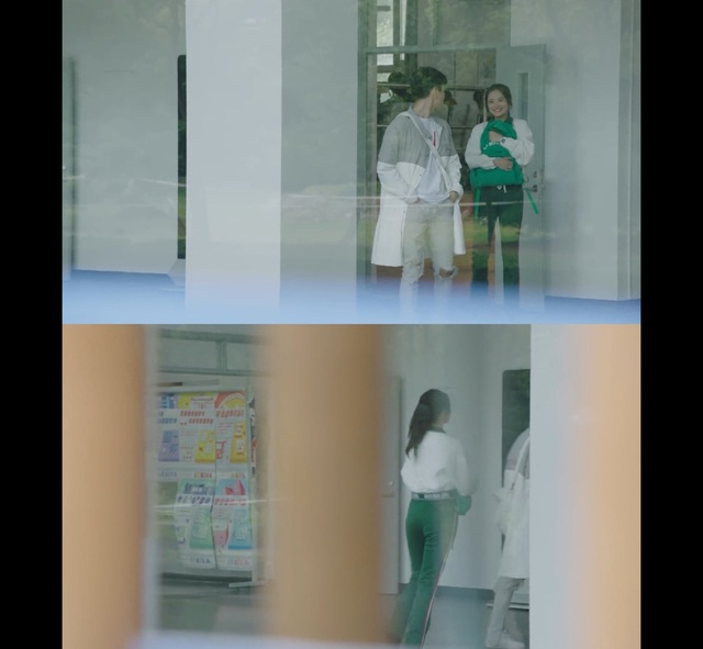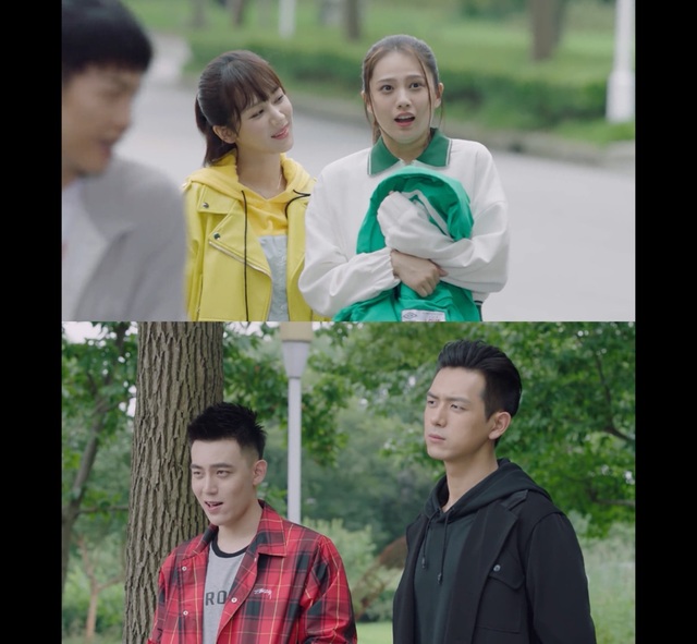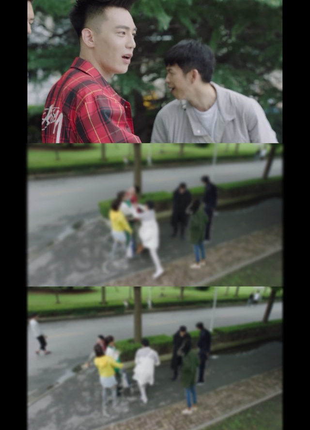佟年和沐柠两人在教学楼门口看着这一幕