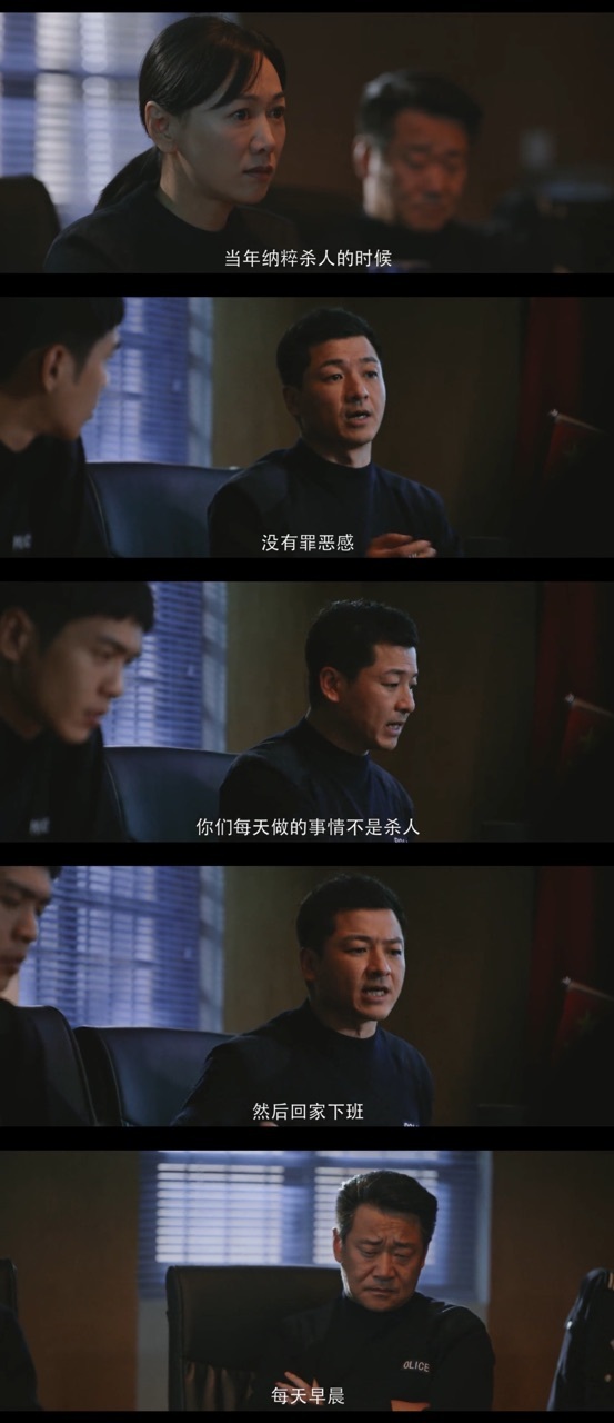 高潮你们每天做的事情不是杀人,跟平常老百姓一样,上班打卡,在单位里边儿杀死几个害虫,然后回家下班。他们这些刽子手在家里面都是顶天立地的,慈祥的,有责任感的父亲,每天早晨会温柔的跟他的妻子和孩子说,爸爸去上班了,你要听妈妈的话啊,然后去上班,去干嘛?杀人!