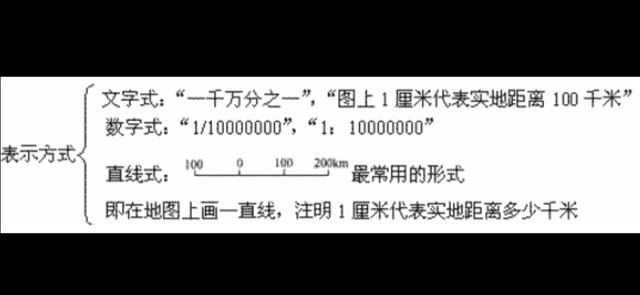 ①文字式:在地图上用文字直接写x地图上1厘米代表实地距离多少千米。如:图上1厘米相当于实地距离100千米。