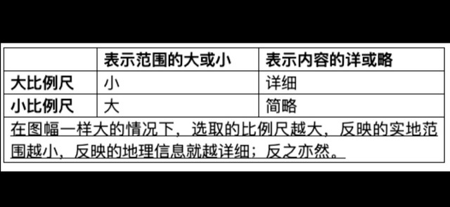 (4)比较比例尺的大小与范围大小和内容详略之间的关系: