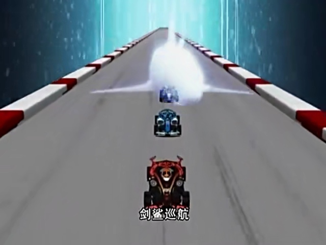主持人:在终点前,爆威队突然使出瞬间加速,爆威队冲线了