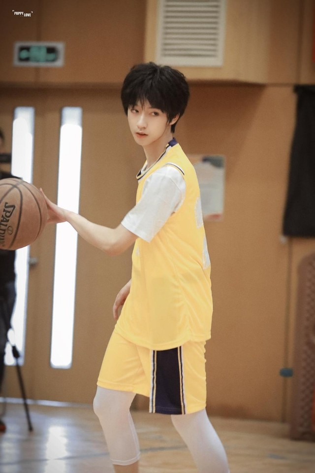 顾淮安刚下车就看到了迎面走来的贺峻霖,男孩儿身着篮球服,手上抱着个篮球,汗如瀑布。