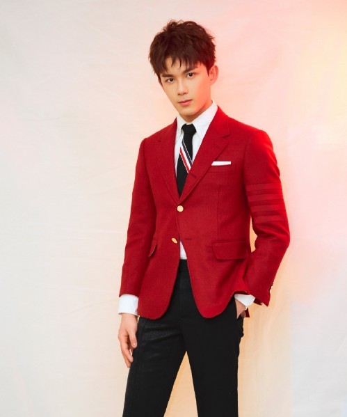 黎簇穿着红色西装