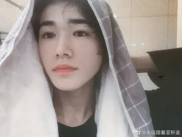 顶着毛巾,少年俊郎的脸上却带着一丝孩子般天真的童稚,