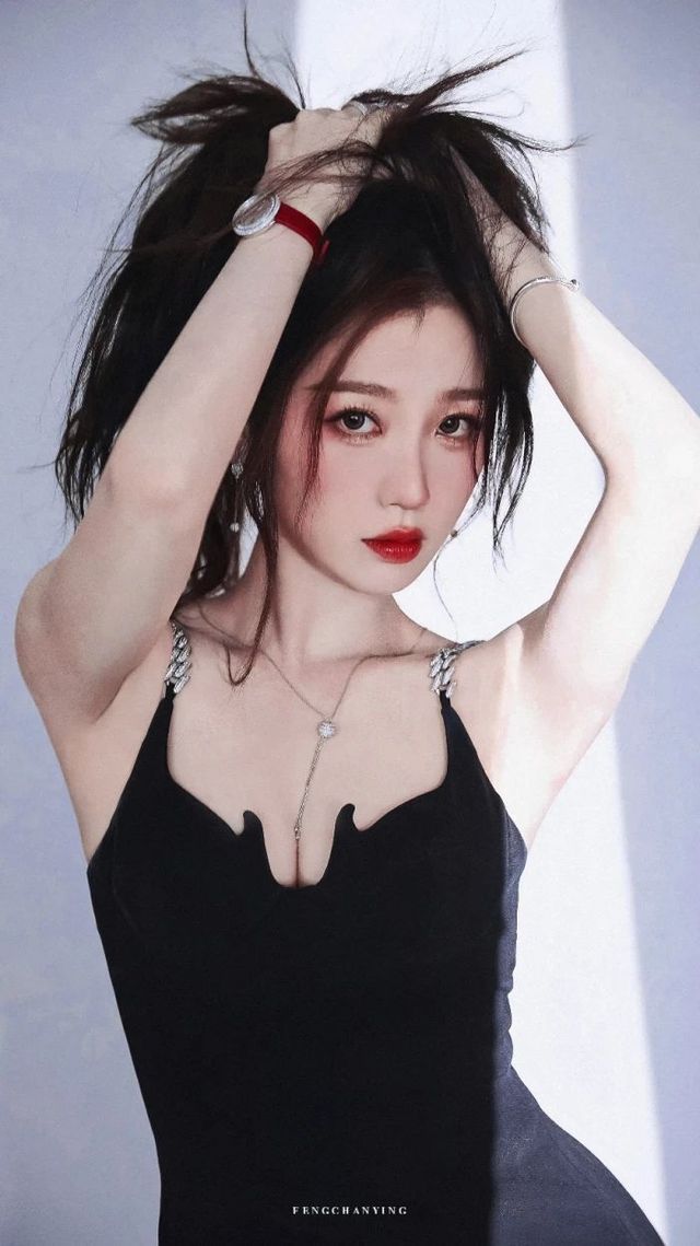 黑色与白皙的皮肤构成极强的反差,越发显得肤如凝脂,精致优雅。