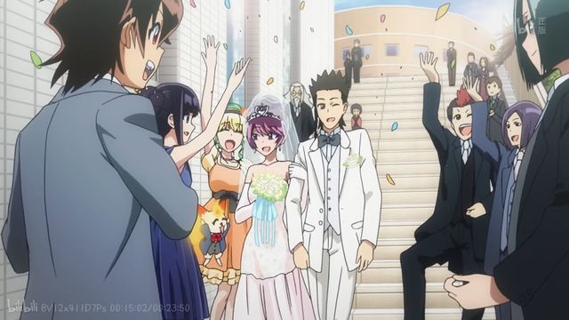 扔捧花的时候化野红绪差点就接到了,结果手滑落了下去,生疏里娟接到了