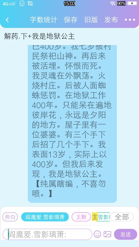 阎魔爱.雪影璃萧〔冷〕但我400岁还算小。在本公主之上,还有很多人已经十四百或14亿多岁。