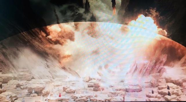 对不对视的先不说了,这会紫黑色的妖风长成了通天的巨龙,在渊岭沼泽的上方聚集成朵巨大的蘑菇云,伴随着震耳欲聋的雷霆万钧之声,天上降下一道道火龙、以摧枯拉朽之势对着渊岭沼泽里进行无差别攻击!