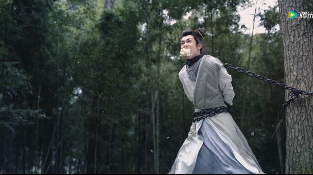 在一旁看着关七暴行的王小石目眦欲裂、嘴里塞着布团说不出话,只能在原地急的直跳脚。