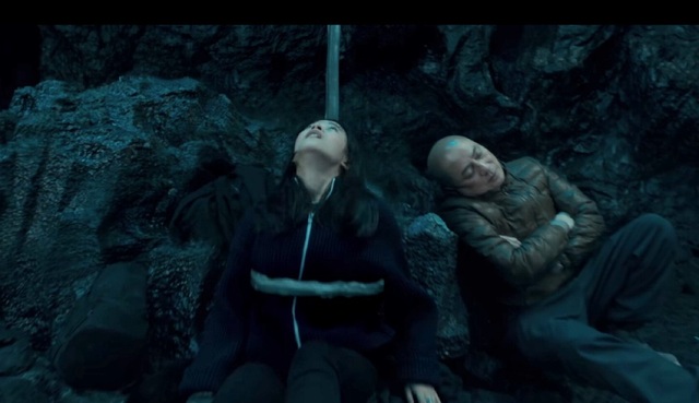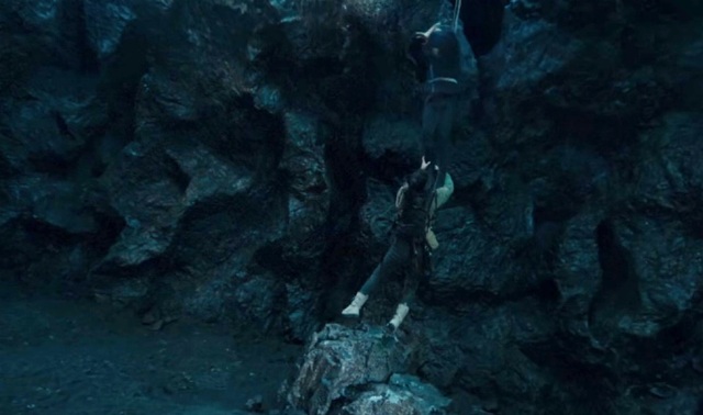 雪莉杨在阿湘被拖入洞穴的一瞬间飞身而起、牢牢的抓住了阿湘的脚!顿时俩人同时被拉上了半空、一同拉进洞穴!
