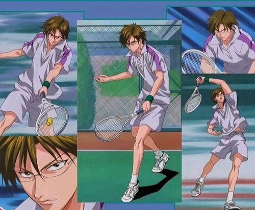 手冢也看到了两个人,摸了摸刚刚被脱手的球拍打到的肩膀,走向两个人