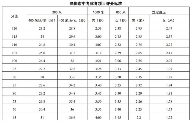 (本人是深圳的所以就用的深圳中考标准,网上查的,不要太较真)