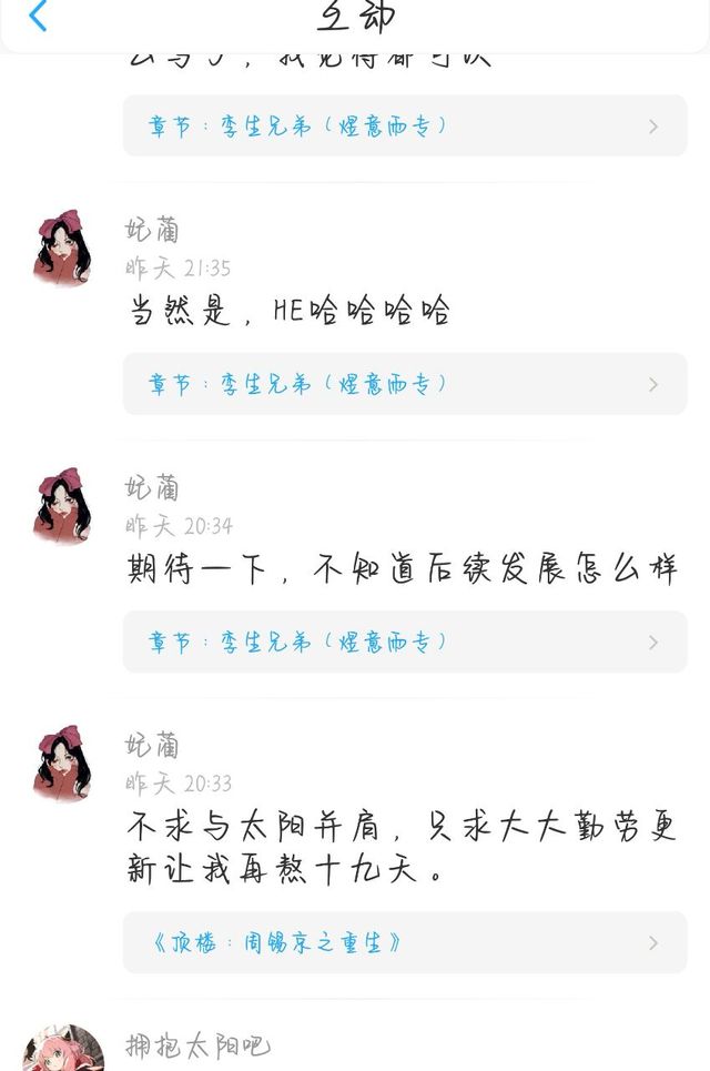 申秀莲作者:感谢评论,其实最近也有在考虑结局了,只是还在纠结最后的结果