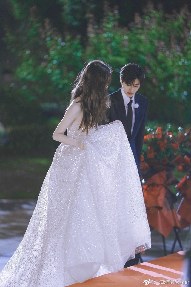 她从楼梯上走下来,轻盈的像一只蝴蝶。只见她身上穿了一件白色的晚礼裙,绸面的长裙轻裹着她纤柔的身躯,如水波般从身上流淌及地。抹胸的长裙上用细小的亮片散落在裙上,淡雅而高贵。