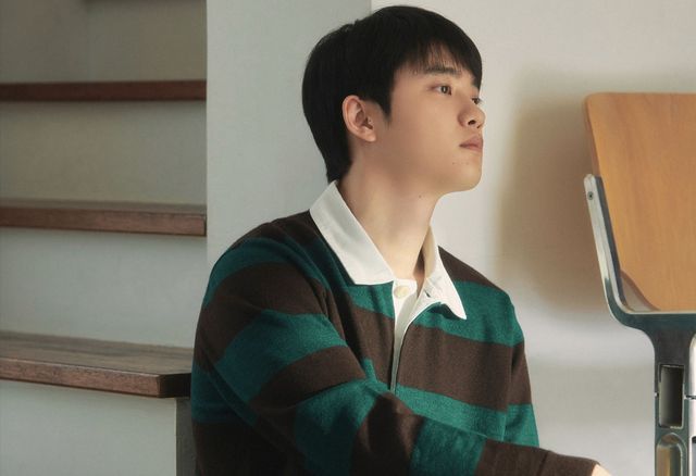 都暻秀脸颊两旁微微泛红,红到耳根子,双手更是无处安放,十分不自在,都暻秀单手拖着下巴看向窗外的风景。