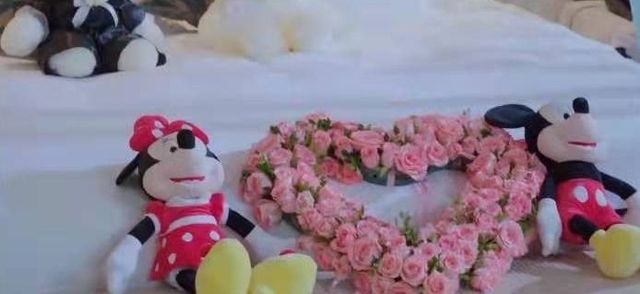 进去以后,首先看到的是粉红色地毯,还有心形花环。小七看了那尴尬的气氛,说了一句。