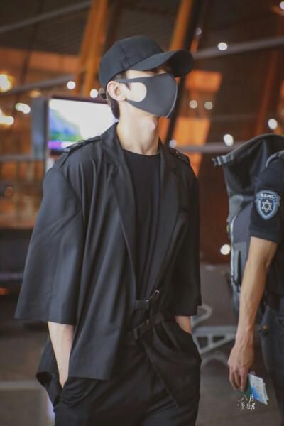 身高看起来180+,从身影不难看出是个男生,戴着黑色鸭舌帽和黑口罩。