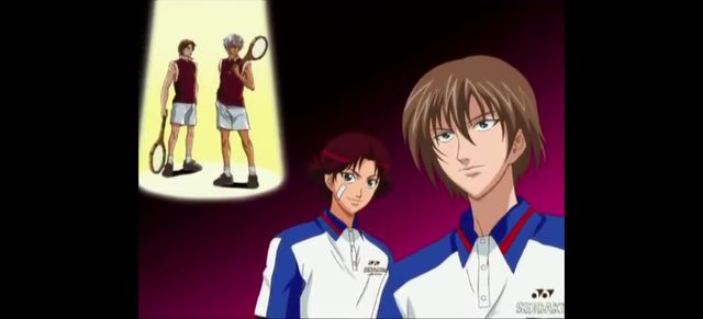 广播:现在开始,进入青春学园对六角中学双打一号的比赛,请双方选手进场