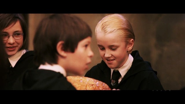 她平复心情,无奈地拿起叉子。突然耳边传来一声口哨声,她抬头,看见德拉科冲她挑眉。她兴致不高地回他一个微笑。坐在德拉科不远处的潘西给了她一个大大的白眼。