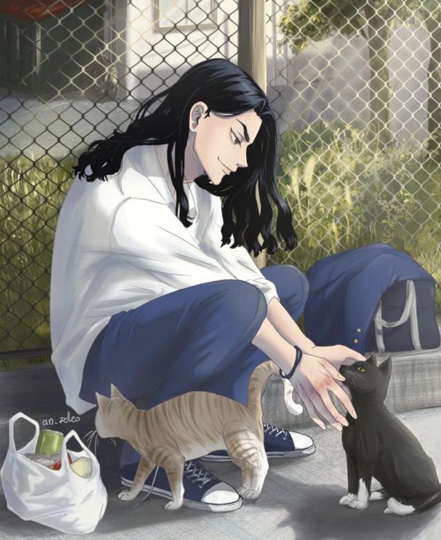 这时,一只黑猫跑到场地脚下,场地伸出手,温和的挠它的脖子。