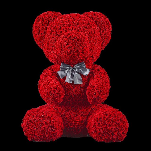 望见远处樱花林中有着一个不明红色物体。走近一看,原来是玫瑰永生花制成的泰迪熊。