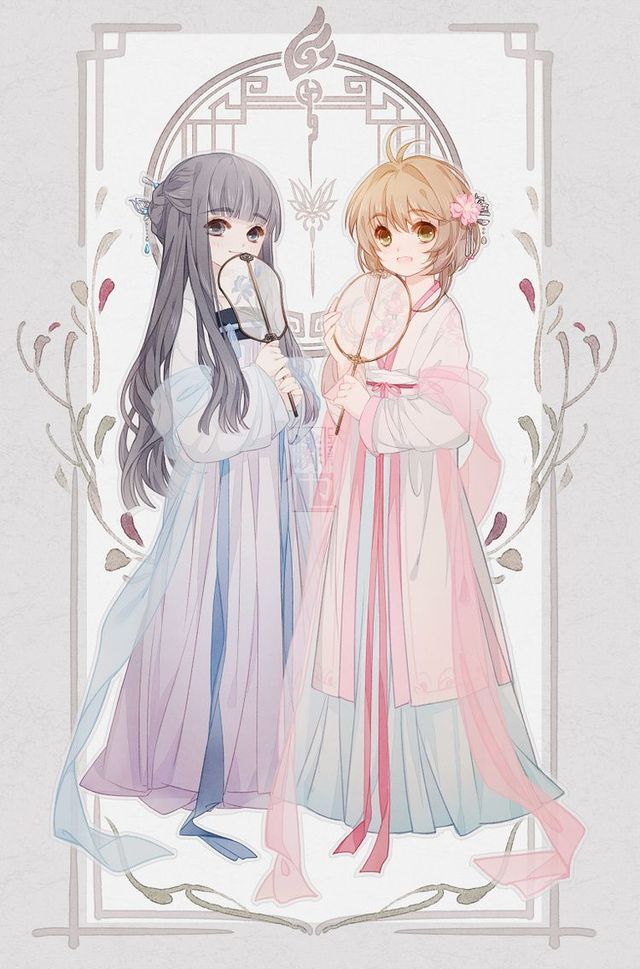 王爱:黄色短发,粉色齐胸襦裙,白色外披,粉色的腰系和仙女摆带,手持白绢地绣孔雀漆柄团扇,桃花小流苏,眼瞳浅黑色。