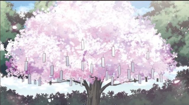 说完,随后一阵风轻柔吹来,卷起叶叶手中的纸条,随后来到桃花树上,轻轻放手,纸条便被祈愿桃花树用树枝挂在树上了