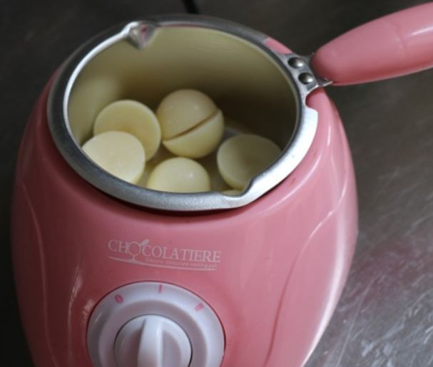芷叶欢首先是把白巧克入锅中融化