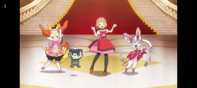 莎莉娜和神奇宝贝们跳出了无比欢快的舞步~她们一起快乐的舞蹈着