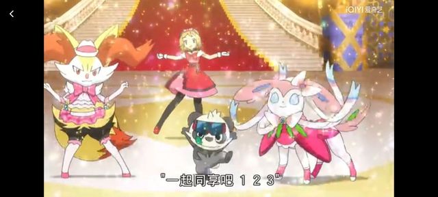 叶叶和长尾火狐以及超能妙喵仙子精灵跳出了美丽的舞蹈
