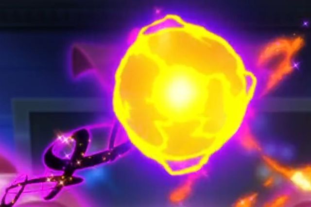 长尾火狐发出大字爆炎,在超能妙喵的精神强念作用下,化作火花飞散,紧接着仙子精灵的月亮🌙之力让空中出现了月亮,而仙子精灵发动缎带缠绕在月亮下,叶叶乘坐仙子精灵的缎带缓缓升起,快到月亮🌙时,一个起身后空翻跳跃,完美落在月亮上,随后轻轻晃动腿,就像荡秋千一般,火花🌸的映衬下,一位可爱美丽的少女坐月亮上荡秋千,随后,在月亮快消失时,超能妙喵使出念力带叶叶缓慢飞舞落下,落下时火花也化作了夜空星辰,叶叶飞舞落下美极了