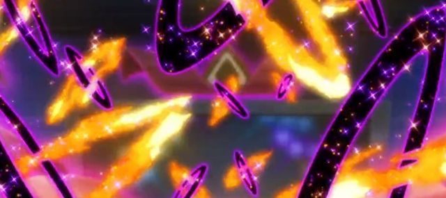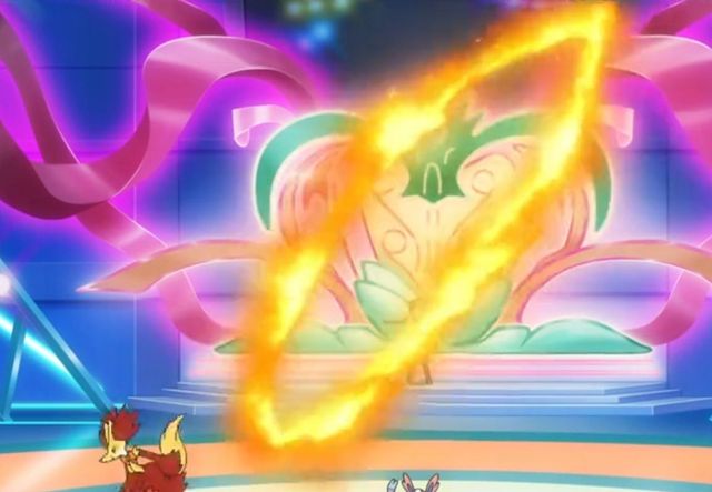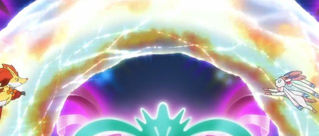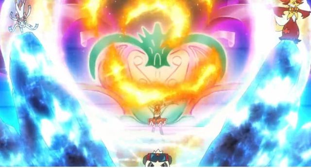 长尾火狐和莎莉娜一起分别拿着火焰🔥棍跑出了一个爱心形状,随后在超能妙喵的精神冲击下,火焰被袭上空中,化作双重爱心叠加的💗随后在仙子精灵的吸取之吻的触碰下,化作许多爱心雨,爱心飘散各处,落在每个人的手里,让每一个观众都感觉幸福美好