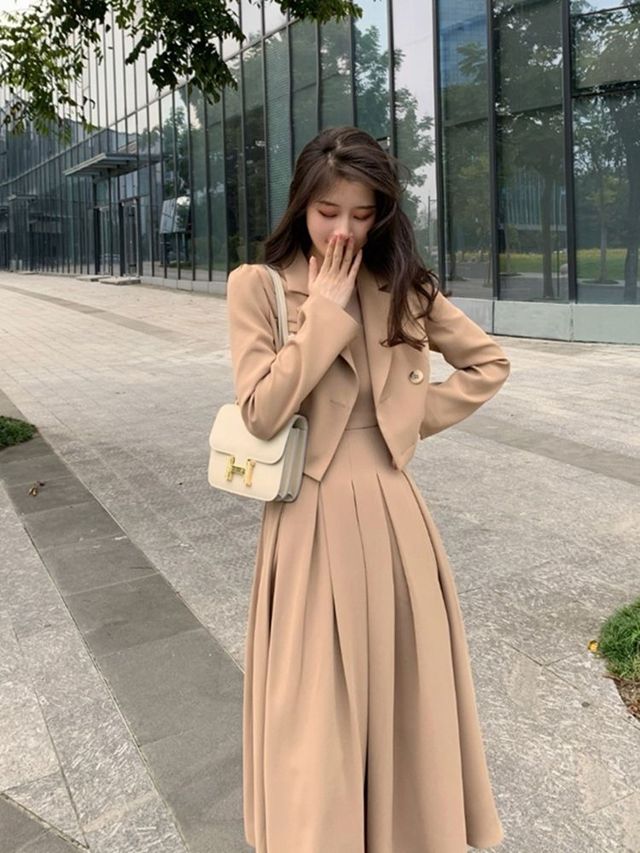 林婉是打算去铭达地产找封燚的,去公司嘛,肯定是要穿西装了,继上一套白色的之后,换了一套土黄色的。