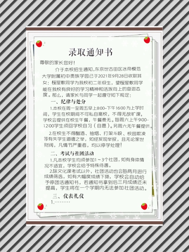 白鹿藤健二“来,这是录取通知书,明天早上就要去学校报到了,你先看一下吧。”