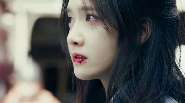 青衣少女唇角带血长着一张无害的小鹿颜,要看这张脸任谁也不会想到她的原型是一条青蛇.