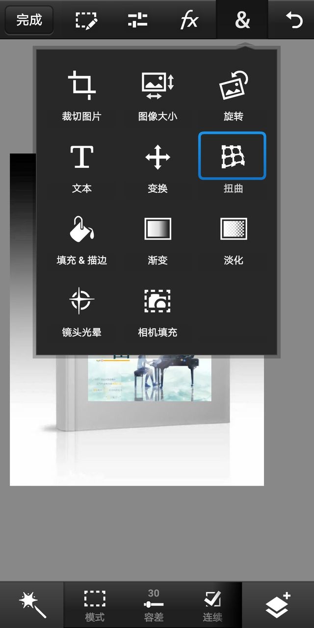 喃二在二楼图层点击“&”—“扭曲”