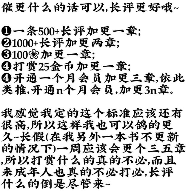 殳禾催更看下图,作者说里有,不知道为什么不能置顶啊!!!
