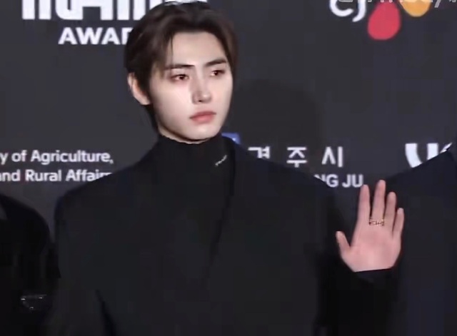 你和宋江、林一是场内的主持人,所以被安排在最后出场,而Owen是艺人里的压轴,所以你和闵玧其就是前后脚的事,都在红毯幕后等待。