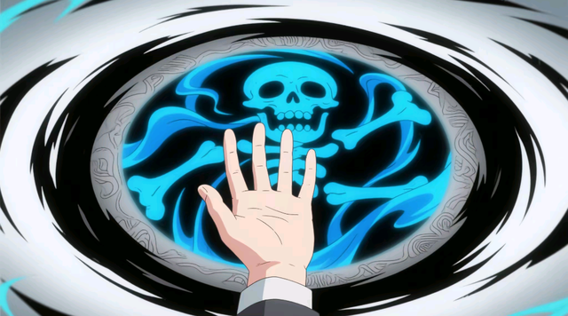 冥渊的掌心之中,毫无征兆地浮现出一轮黑灰色光环。透过这层光环,能隐隐瞧见内部流动着幽蓝色的骷髅状魔纹。紧接着,这轮光环在他掌心中不断放大,渐渐呈现出中空的形态,随后竟从中间断开。断开后的光环,宛如被拓印了幽蓝色魔纹的绸缎,迅速延展并紧紧缠绕上炎帝的身躯。