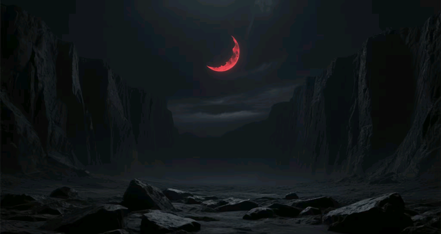 在这片诡秘的地界,黑夜如同永恒的幕布,将一切笼罩其中,空中始终悬挂着一弯残缺的血月,散发着微弱而妖异的红光。极目远眺,满眼皆是漆黑的岩壁,仿佛连空气都被浸染成了深沉的墨色。此处最常见的景象,便是那一块块嶙峋的黑色岩石。