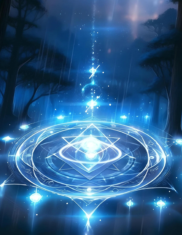他蹲下并双指抵住阵眼,将传导过来的能量汇聚于一点,逐渐凝聚出一个巨大的蓝金色光球。