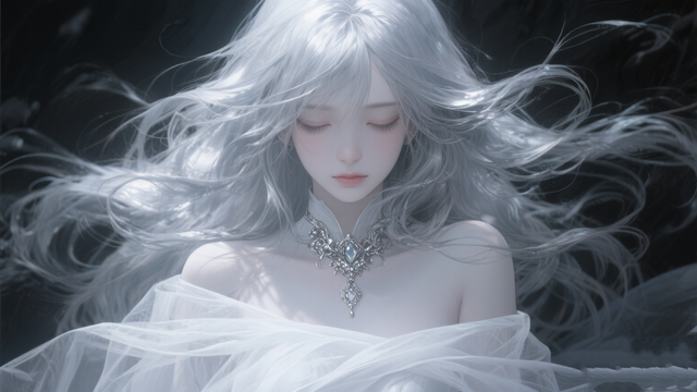 在一股紫黑色雾气环绕之际,恍然间出现了一道熟悉的身影。她那有些冗长的银白色发丝凌乱地搭在肩头,遮盖住了大部分面容,一部分还垂落在腰间。她双眸紧闭,一袭白色纱裙胡乱裹在身上,只是勉强盖住了重要部位,裸露在外的皮肤犹如冷白色的瓷器釉面,精致且水润。