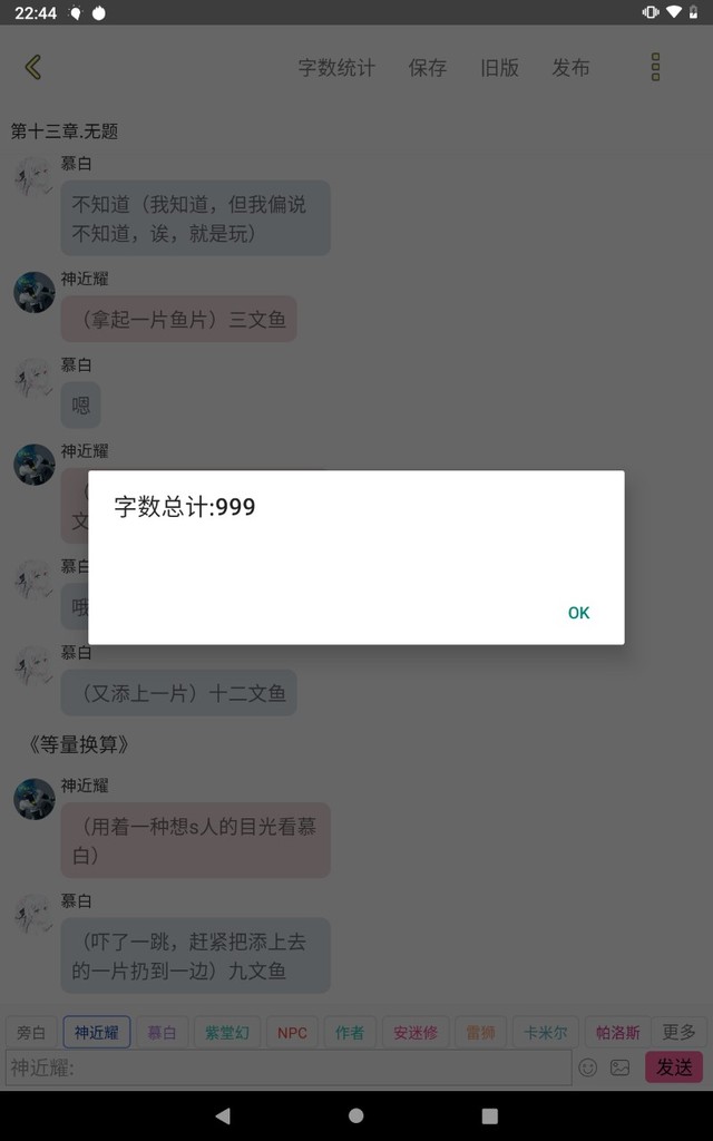 慕白(吓了一跳,赶紧把添上去的一片扔到一边)九文鱼