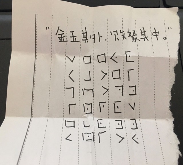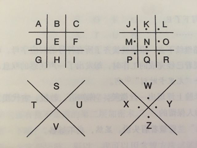 (注:共济会密码,亦或是猪圈密码。是一种以格子为基础的简单替代式密码)